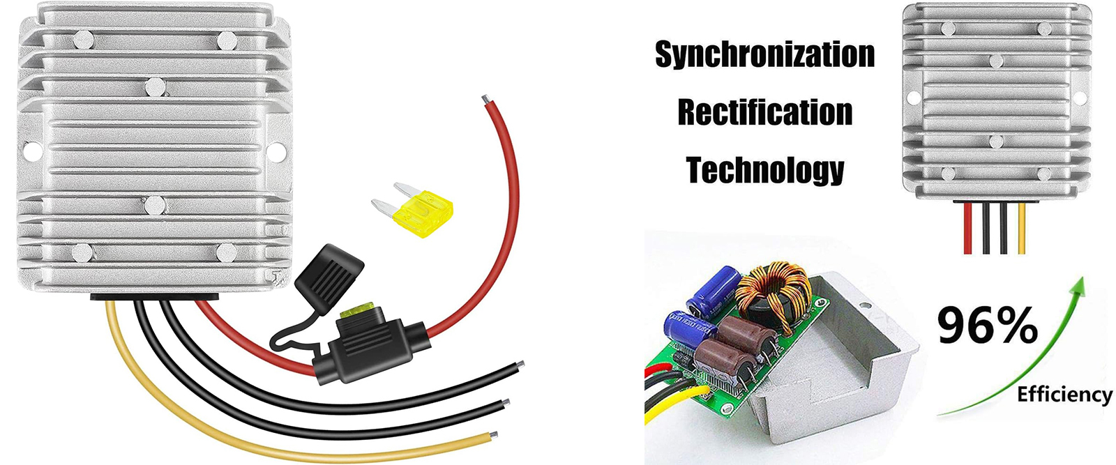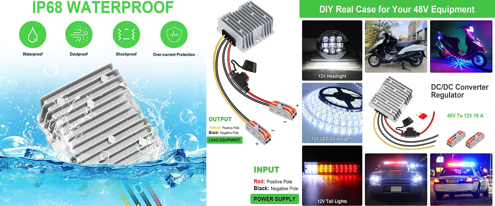 20A 240W DC 36V/48V to 12V Voltage Converter with Fuse Step Down Regulator Buck Reducer Power Converter Waterproof Transformer for Golf Cart